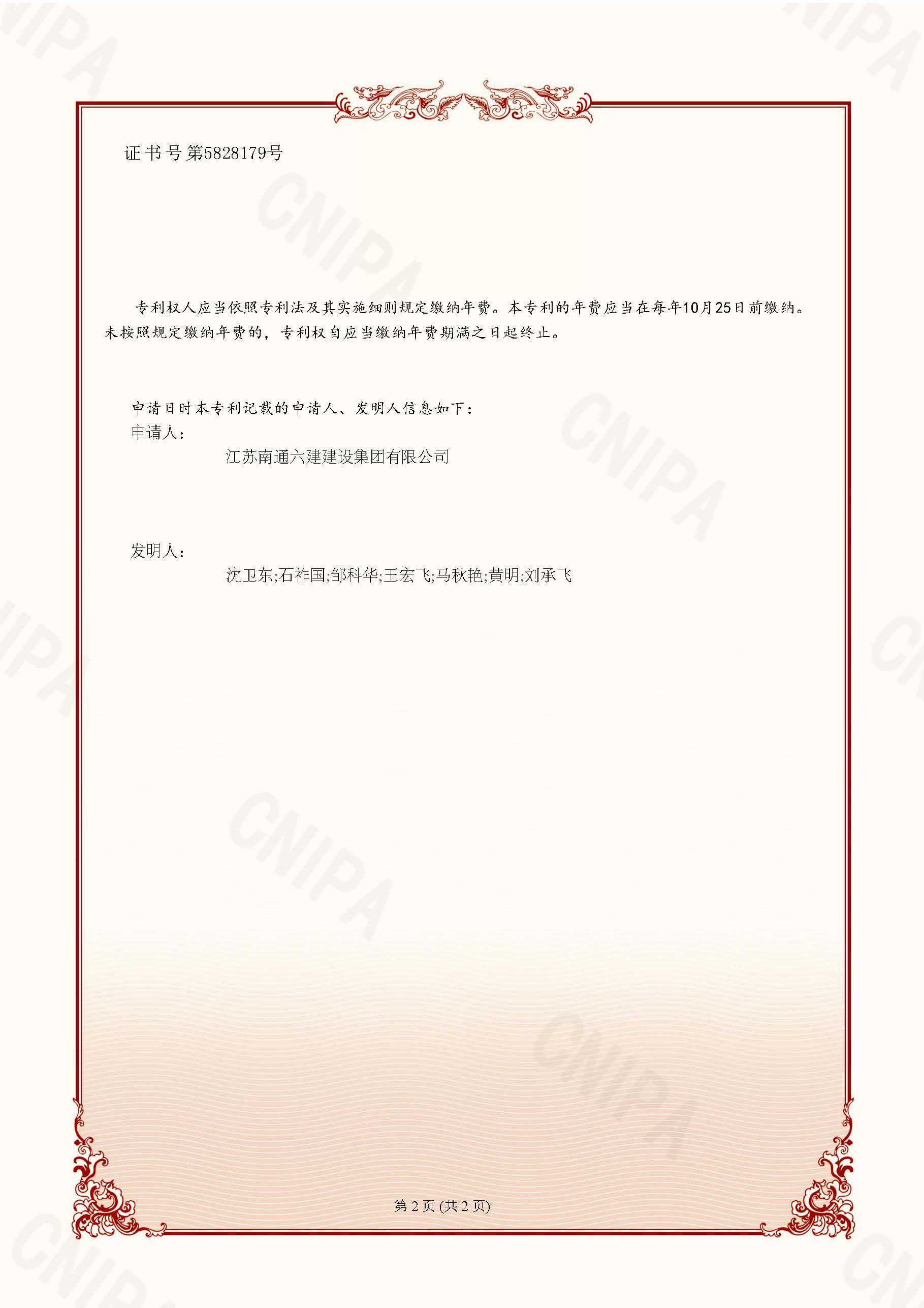 | 22 | 一種塔吊攀爬用防護(hù)結(jié)構(gòu) | 實(shí)用新型專利 | 2022.1 | 南京公司 |